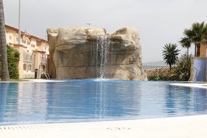 La piscina de adultos tiene una cascada de agua, que funciona varias veces al día.