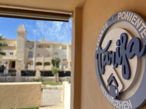 Está ubicado en la tranquila urbanización Terrazas de la Marina, (que cuenta con dos piscinas comunitarias:una infantil y una de adultos con cascada de agua), y a tan solo 200 metros de la playa de Los Lances y del paseo marítimo, a unos 150 metros del supermercado Mercadona y a unos 15 minutos caminando del centro histórico de Tarifa.