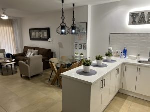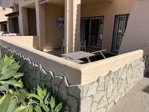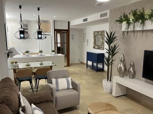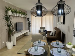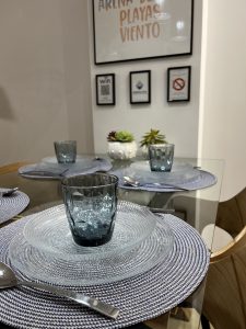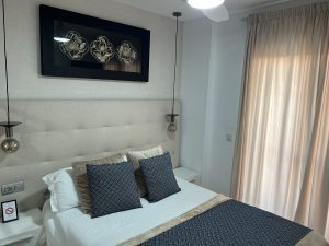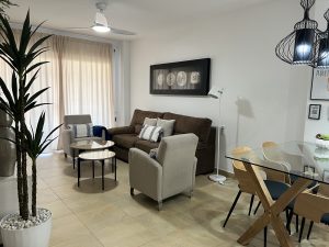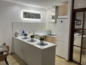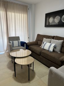 El apartamento tiene unos 50 m2, y consta de un dormitorio, salón con sofá cama, cocina y cuarto de baño. Además, tiene una terraza privada de unos 25m2, que está orientada para que no moleste el viento de levante.