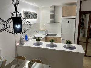 La cocina está equipada con frigorífico, placa vitrocerámica de inducción, microondas, campana extractora de humos, cafetera de cápsulas Dolce Gusto, cafetera eléctrica de goteo, hervidor eléctrico de agua, sartenes, cacerolas, lavadora, botiquín de primeros auxilios, menaje de cocina y enseres de limpieza (escoba, …)